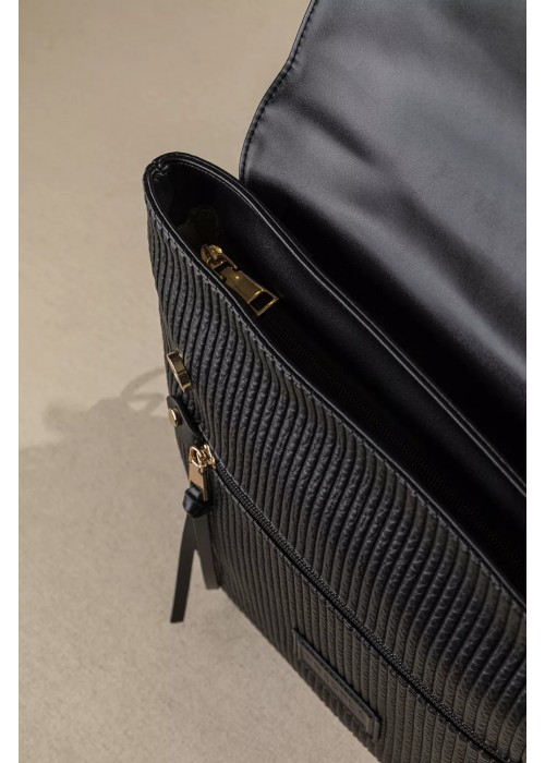 Μαλακό μεγάλο Backpack που κλείνει με καπάκι με δυο μαγνητικά buttons. Η τσάντα κλείνει με φερμουάρ για ασφάλεια, κάτω από το καπάκι .Ενιαίος χώρος με πολλές τσέπες. Μεγάλη χρηστική τσέπη με φερμουάρ στο μπροστινό μέρος και βοηθητική τσέπη με φερμουάρ στο πίσω μέρος. Τα χεράκια των ώμων είναι δερματ..